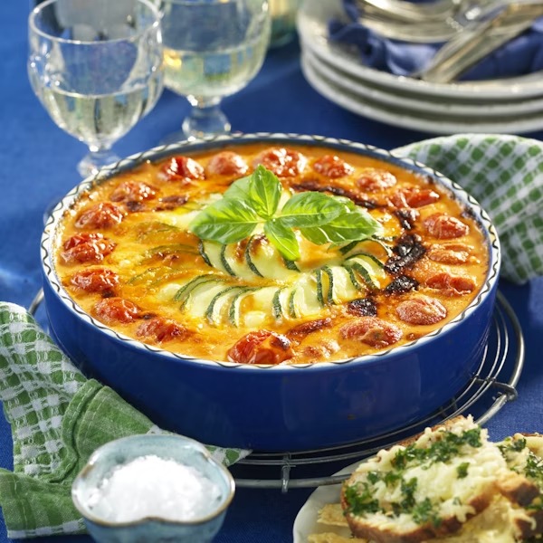 Squash, tomater og mozzarella – her lager vi en deilig grateng med italienske farger og smaker! Server med hjemmelaget hvitløksbrød.